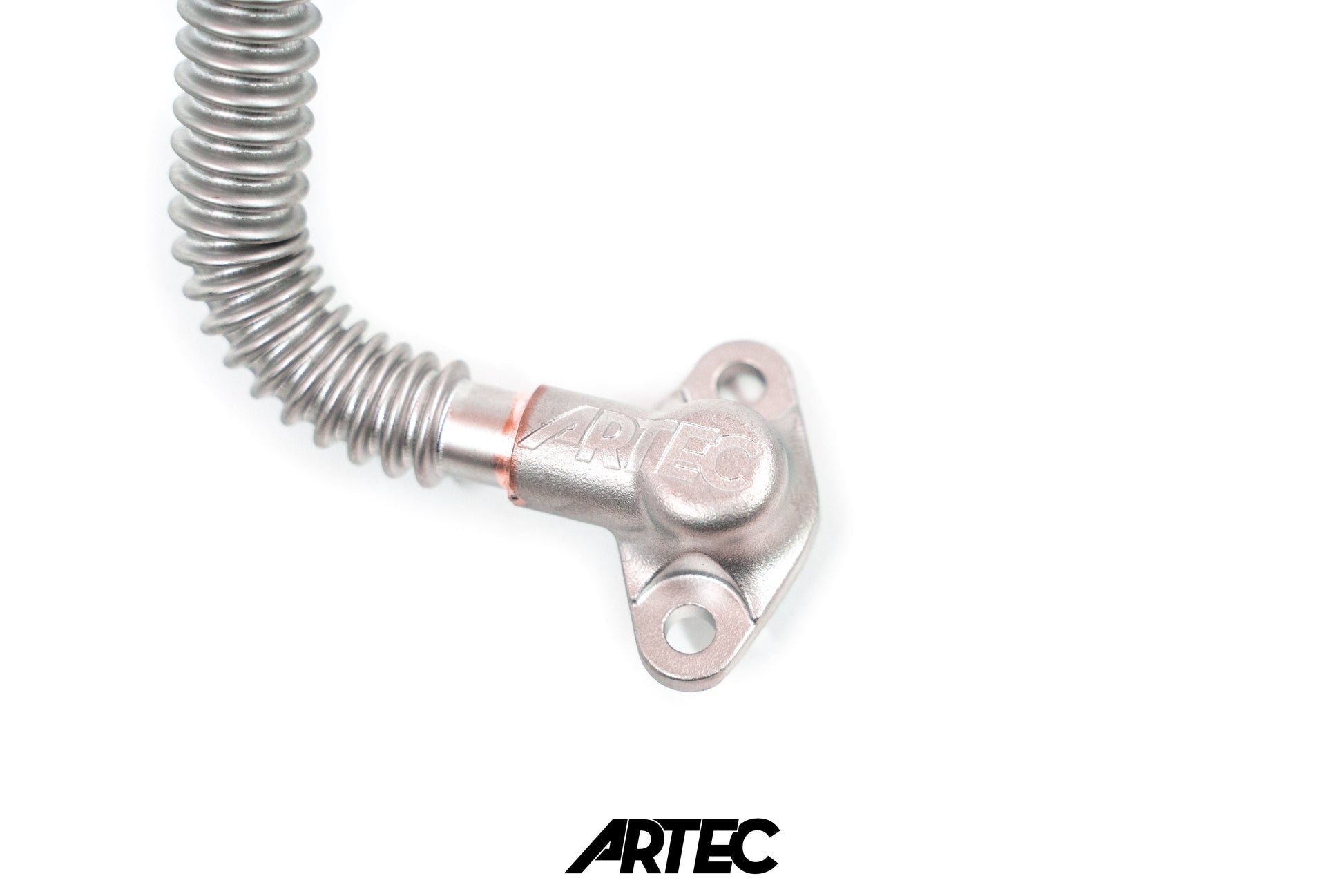 Manufactured from stainless steel for durability and corrosion resistance, the ARTEC drain pipe replaces the factory unit which is known to crack and leak under high stress conditions.