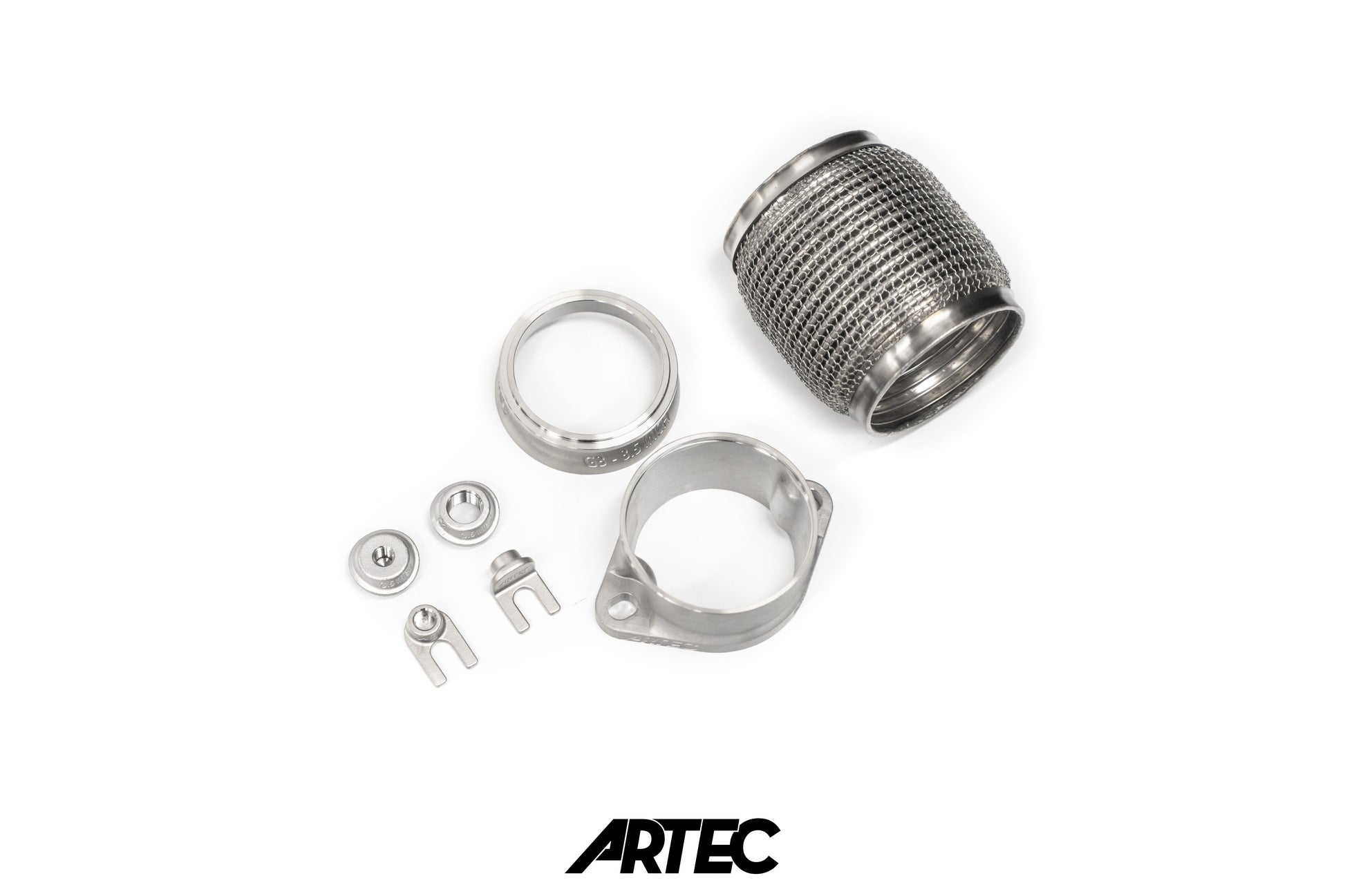 - The final piece of the puzzle is the ARTEC Cast 89-80mm 2-bolt flange. This flange allows you to easily transition from 3.5" pipe back to a standard 3" 2-bolt flange. It allows for bolt-on compatibility with existing aftermarket 2-bolt exhaust systems without sacrificing flow.